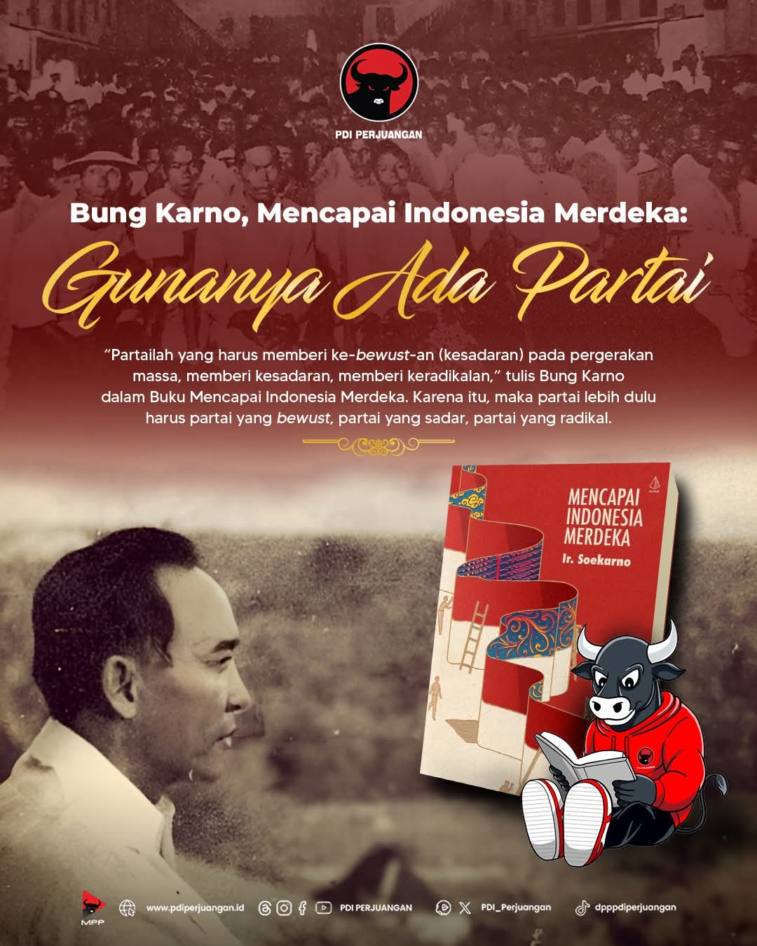 “Partailah yang harus memberi ke-bewust-an (kesadaran) pada pergerakan massa, memberi kesadaran, memberi keradikalan,” tulis Bung Karno.